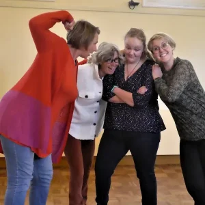 “Daar was het theater om in mijn leven te voegen! Ik heb gelachen en gehuild, nam de leiding en volgde, had een hoge status en een lage status en heb aan het eind van de cursus een van mijn monsters een schop onder z’n kont gegeven. En ook nu de cursus afgelopen is, hoor ik Saskia wel eens in mijn hoofd zeggen: “Alles wat je doet is goed, hè! Het hoeft niet origineel of perfect!””
